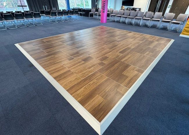 Our storage trolleys are manufactured utilising a mild steel which is then powder coated in a luxury antique silver finish. The unit is designed to hold a full 15ft x 15ft (4.57m x 4.57m) Portable Dance Floor in its entirety.